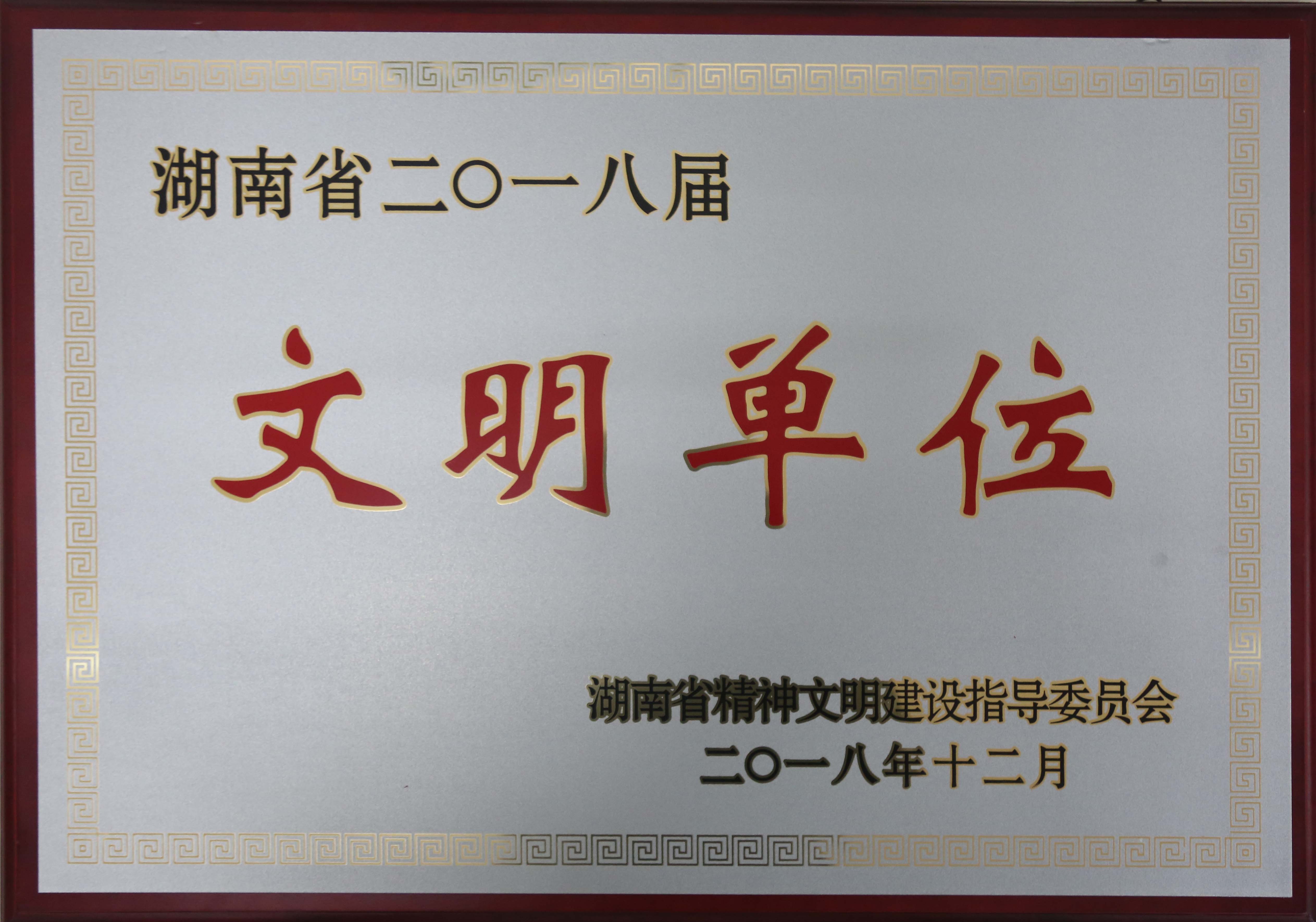 2018年12月被湖南省精神文明建設(shè)指導委員會評為“湖南省二〇一八屆文明單位”